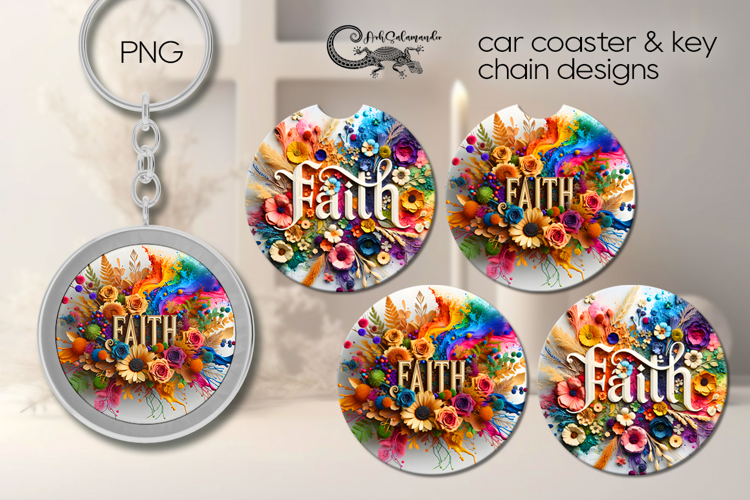 Christian Faith | coaster & key chain sublimation design P2 example image 1