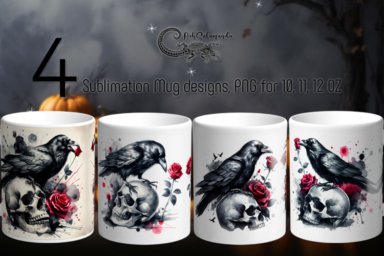 Gothic Halloween | 4 skulls Sublimation Mug designs PLUS