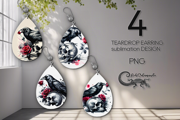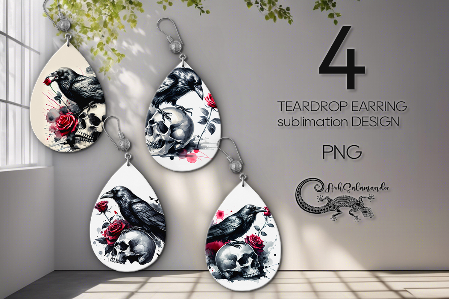 Similar Design Products to Gothic skulls | 4 Teardrop Earring Sublimation designs P
