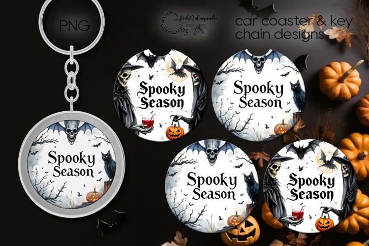 Spooky Halloween | car coaster & key chain sublimation example image 1
