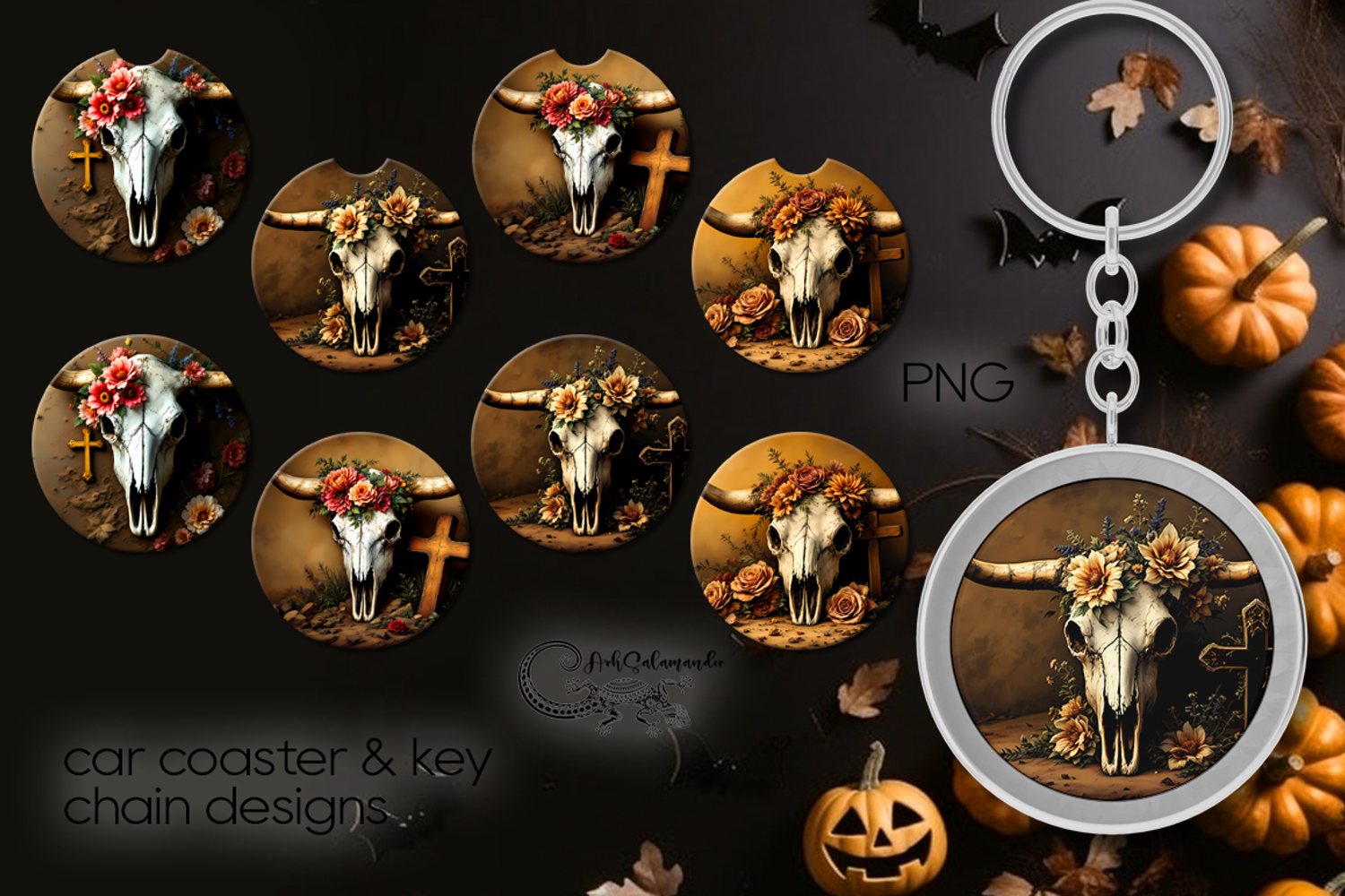 Halloween cow | 4 car coaster & 4 key chain sublimation example image 1