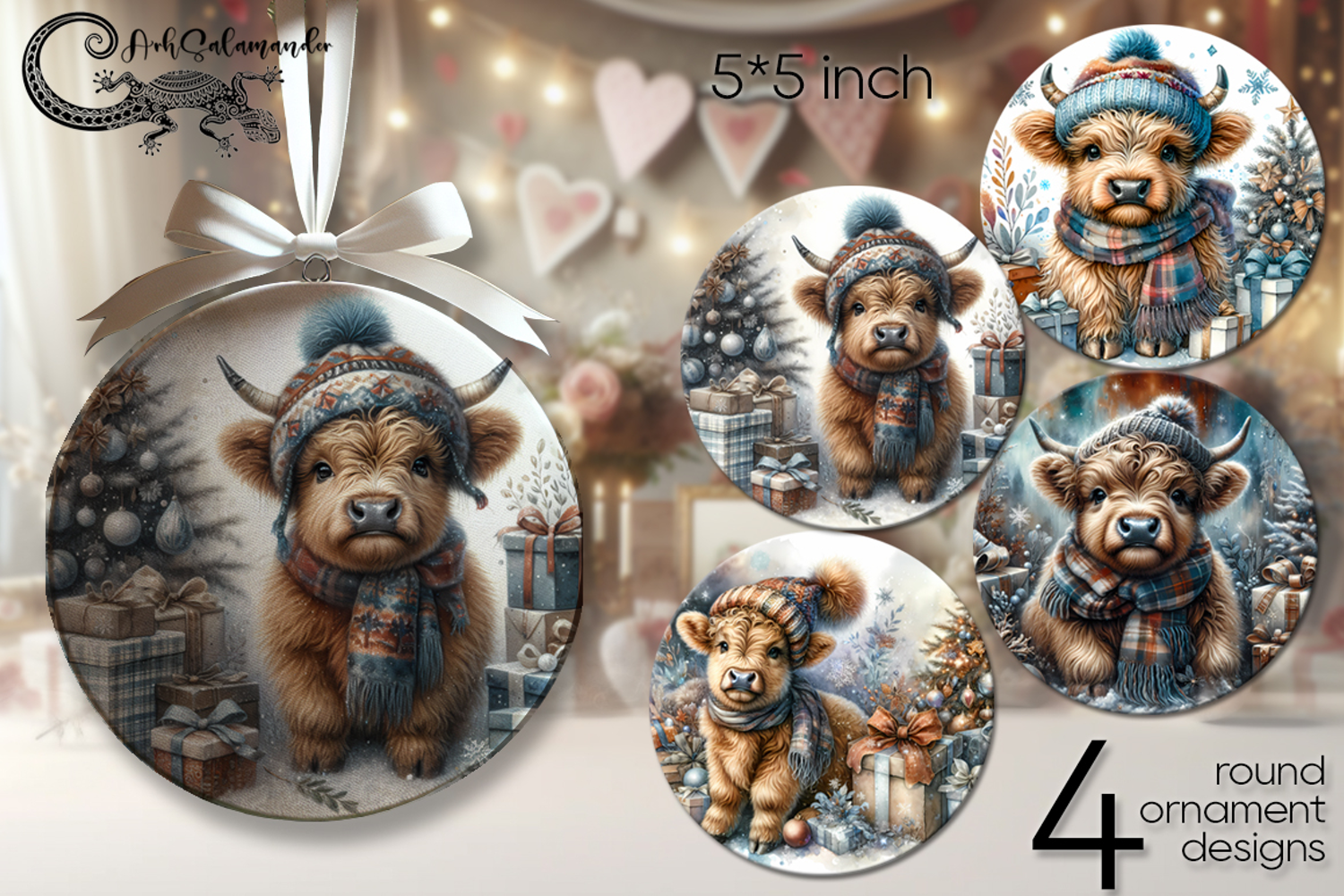 Similar Design Products to Christmas cow | retro round ornaments sublimation PL