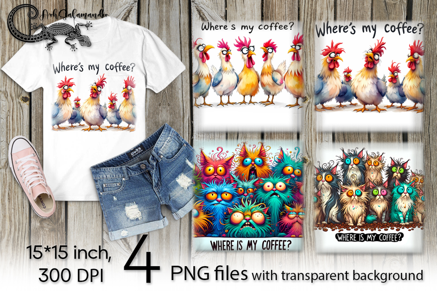 Coffee animals | 4 funny PNG Sublimation designs example image 1