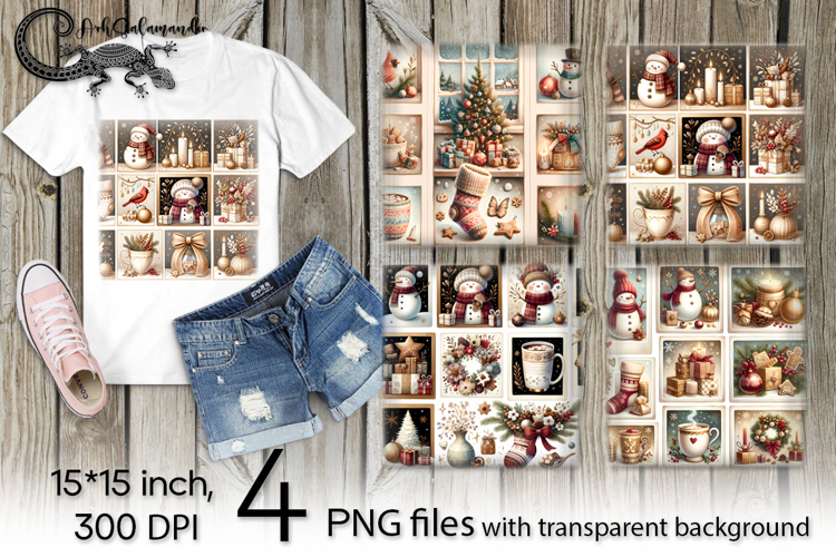 Similar Design Products to Christmas collage | 4 PNG retro Sublimation designs PL2
