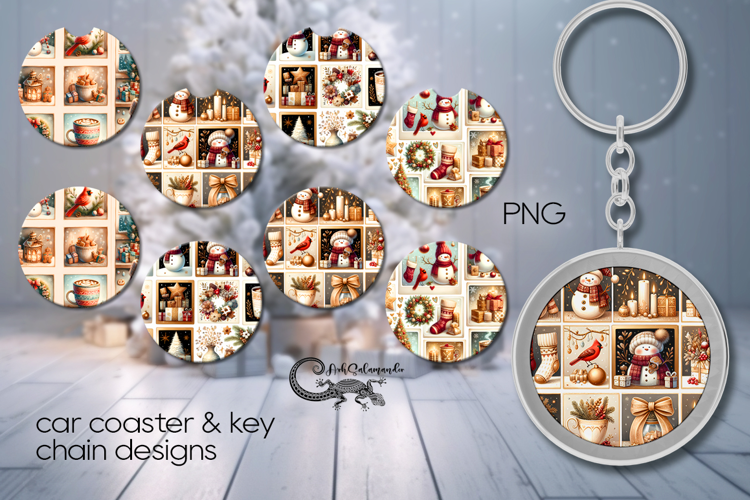 Xmas collage | 4 Car coaster & 4 key chain sublimation P2 example image 1