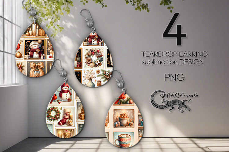 Xmas collage | christmas Teardrop earring sublimation PL2 example image 1