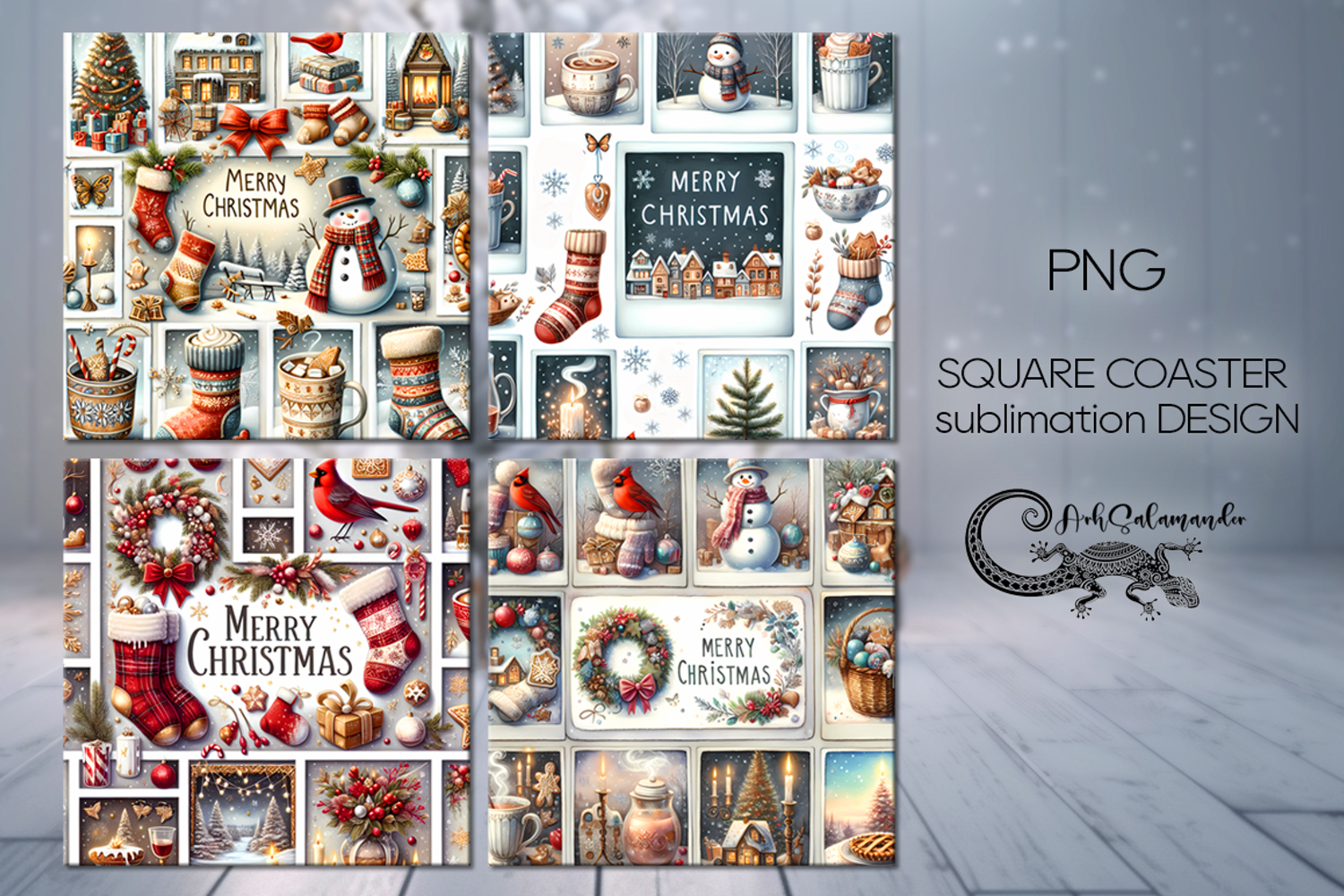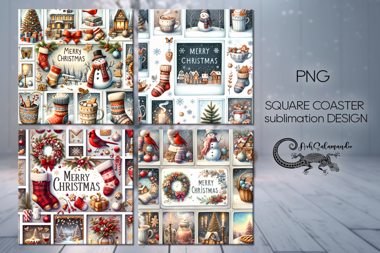 Similar Design Products to Christmas collage | retro square coaster sublimation designs