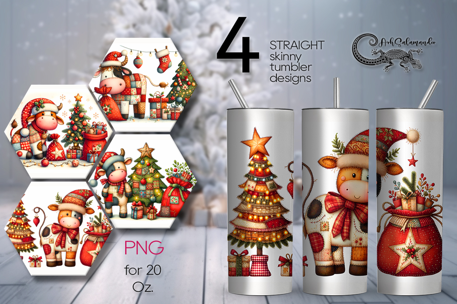 Xmas patchwork | vintage Skinny tumbler sublimation design example image 1