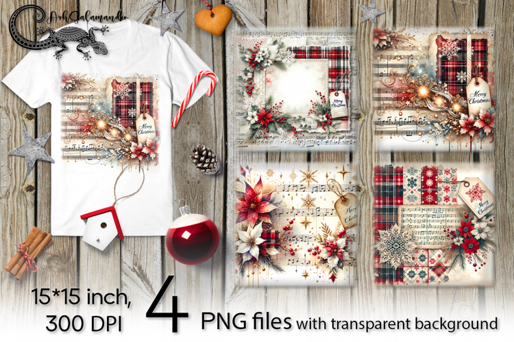 Vintage Christmas | 4 PNG retro Sublimation designs