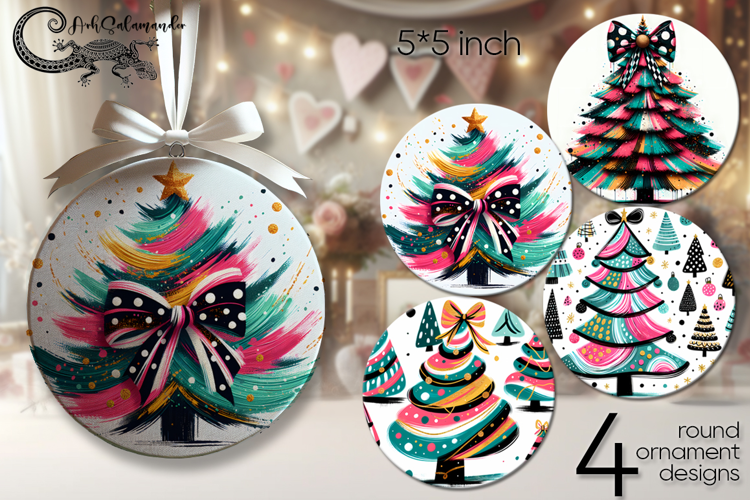 Christmas tree | Xmas round ornaments sublimation PL example image 1