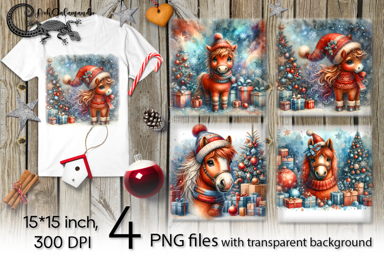 Watercolor christmas horse | 4 retro PNG Sublimation designs example image 1