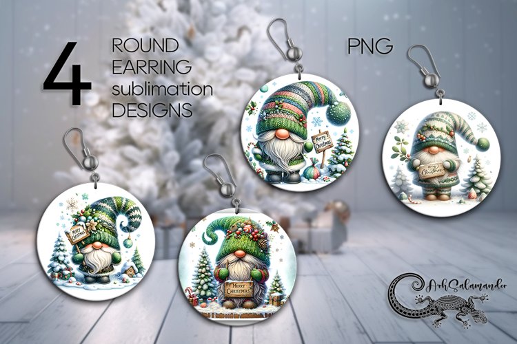 Christmas gnome | xmas Round earrings sublimation design P2 example image 1