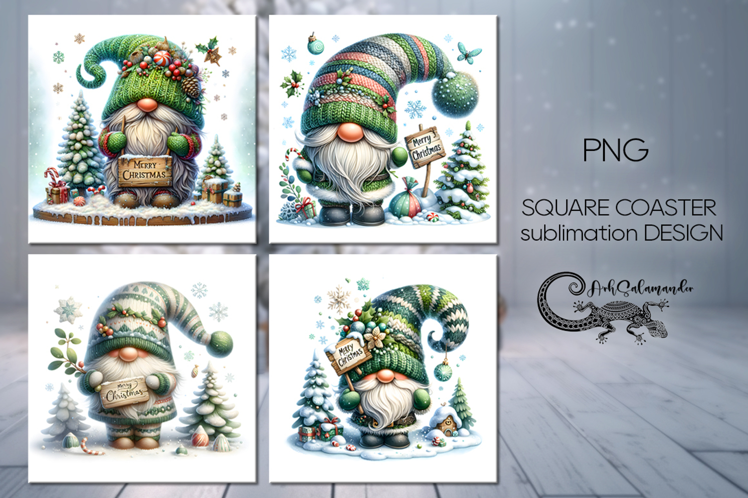 Christmas gnome | 4 xmas square coaster sublimation PL2 example image 1