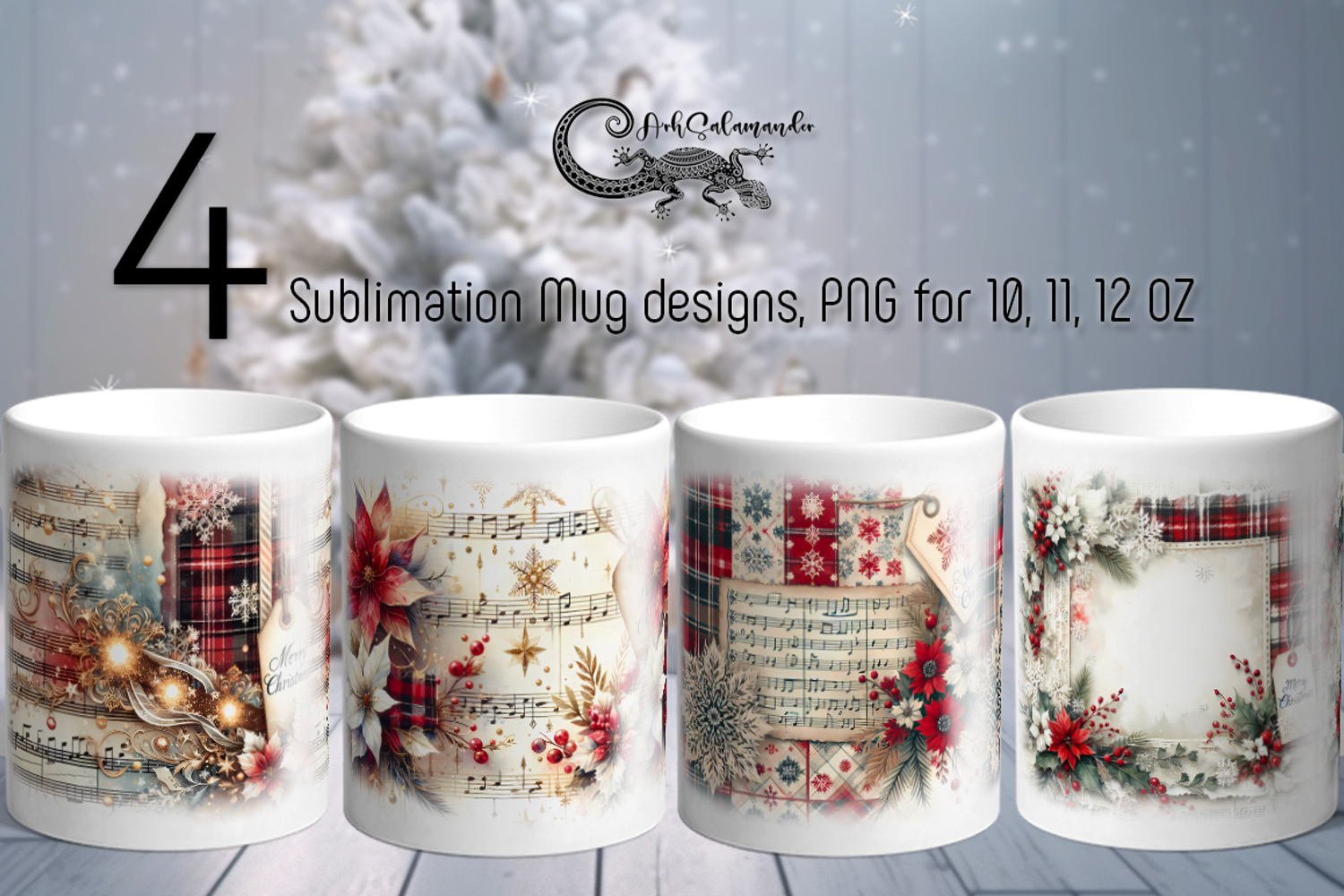 Vintage Christmas | 4 Retro Sublimation Mug designs