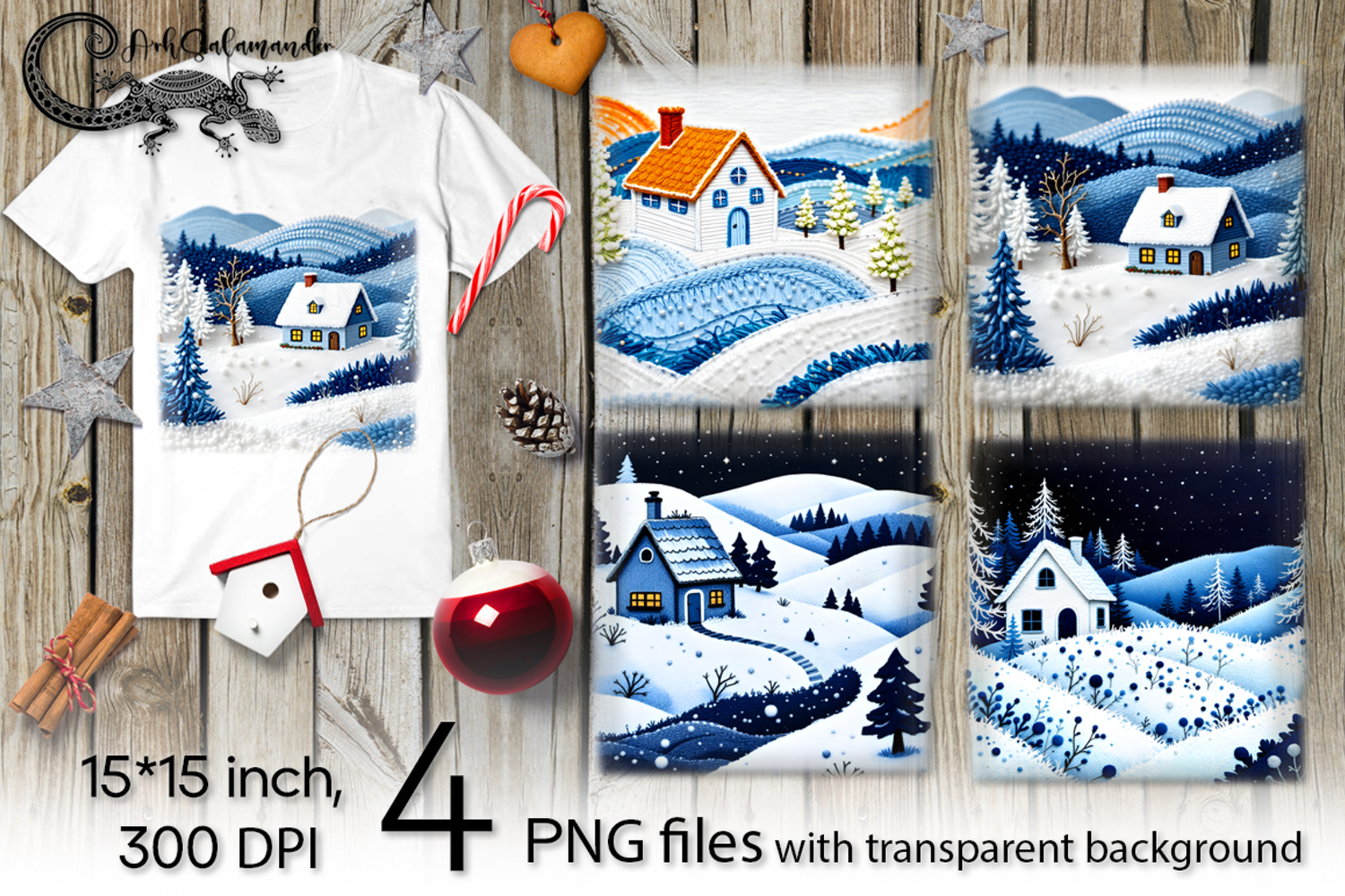 Christmas embroidery landscape | 4 PNG Sublimation designs