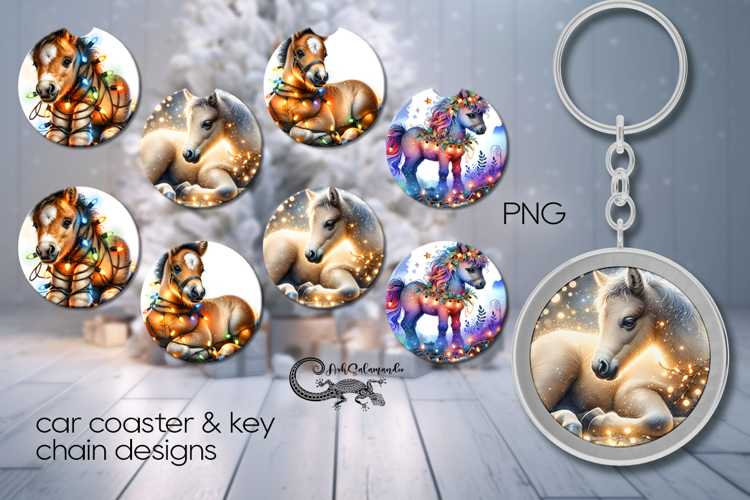 Christmas horse & garland | 4 xmas Car coaster & 4 key chain example image 1