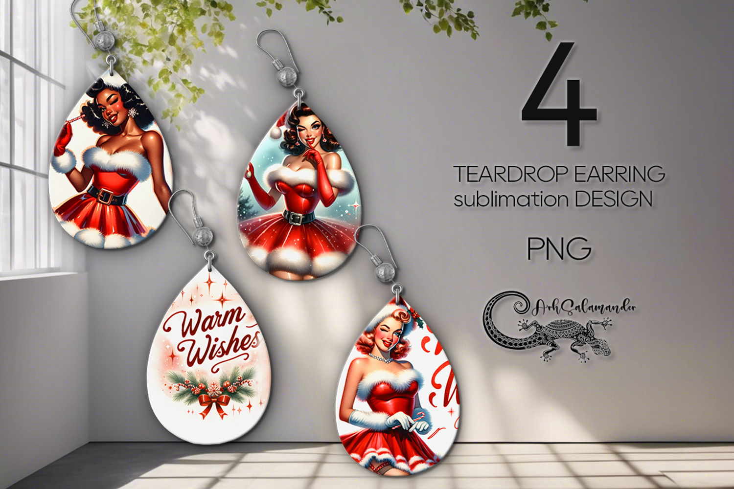 Similar Design Products to Christmas Pin up Girl | retro Teardrop earring sublimation