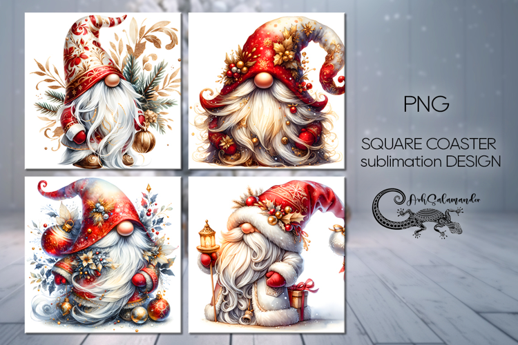 Christmas gnomes | 4 xmas square coaster sublimation PL