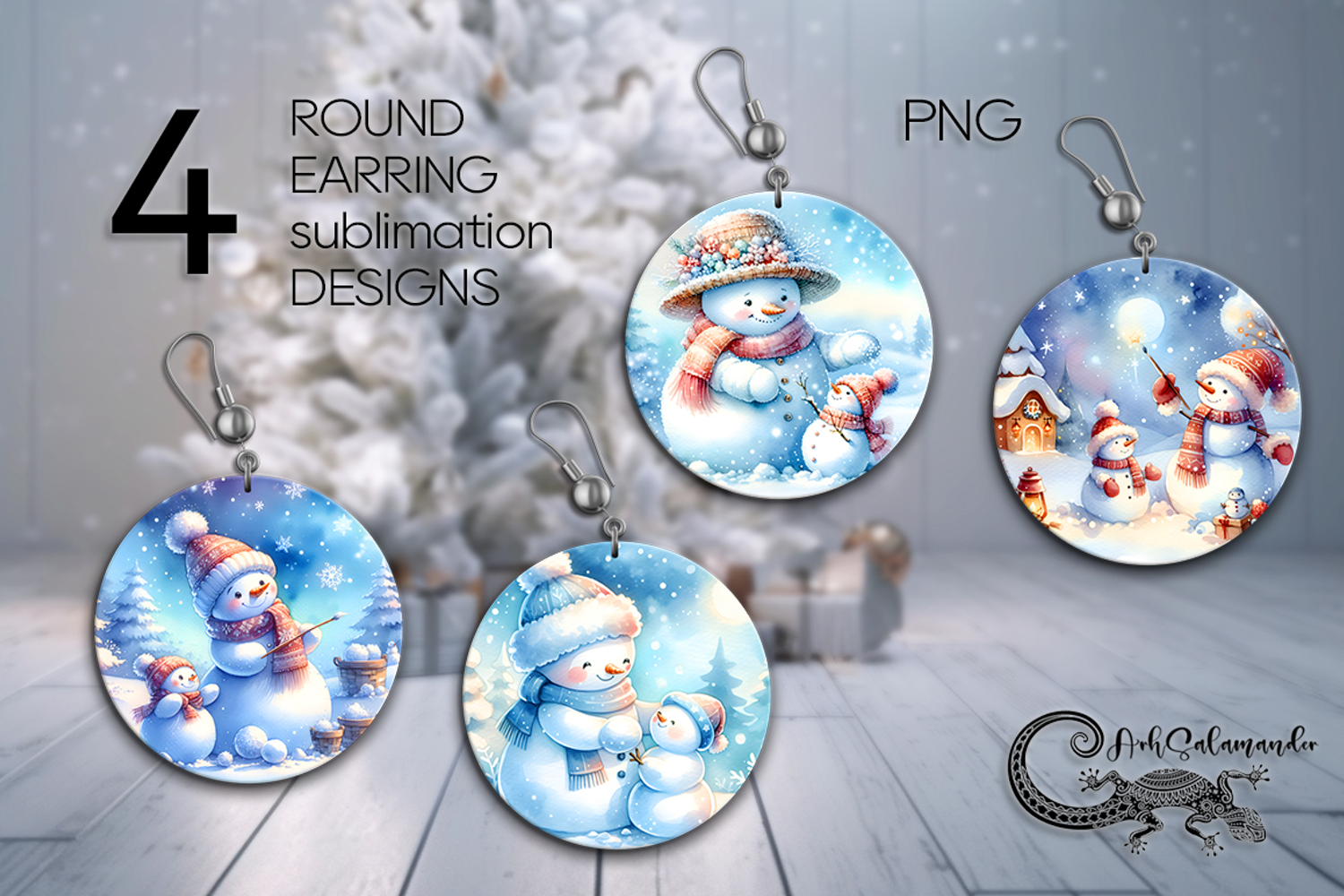 Christmas Snowman | 4 Round earring Sublimation designs P