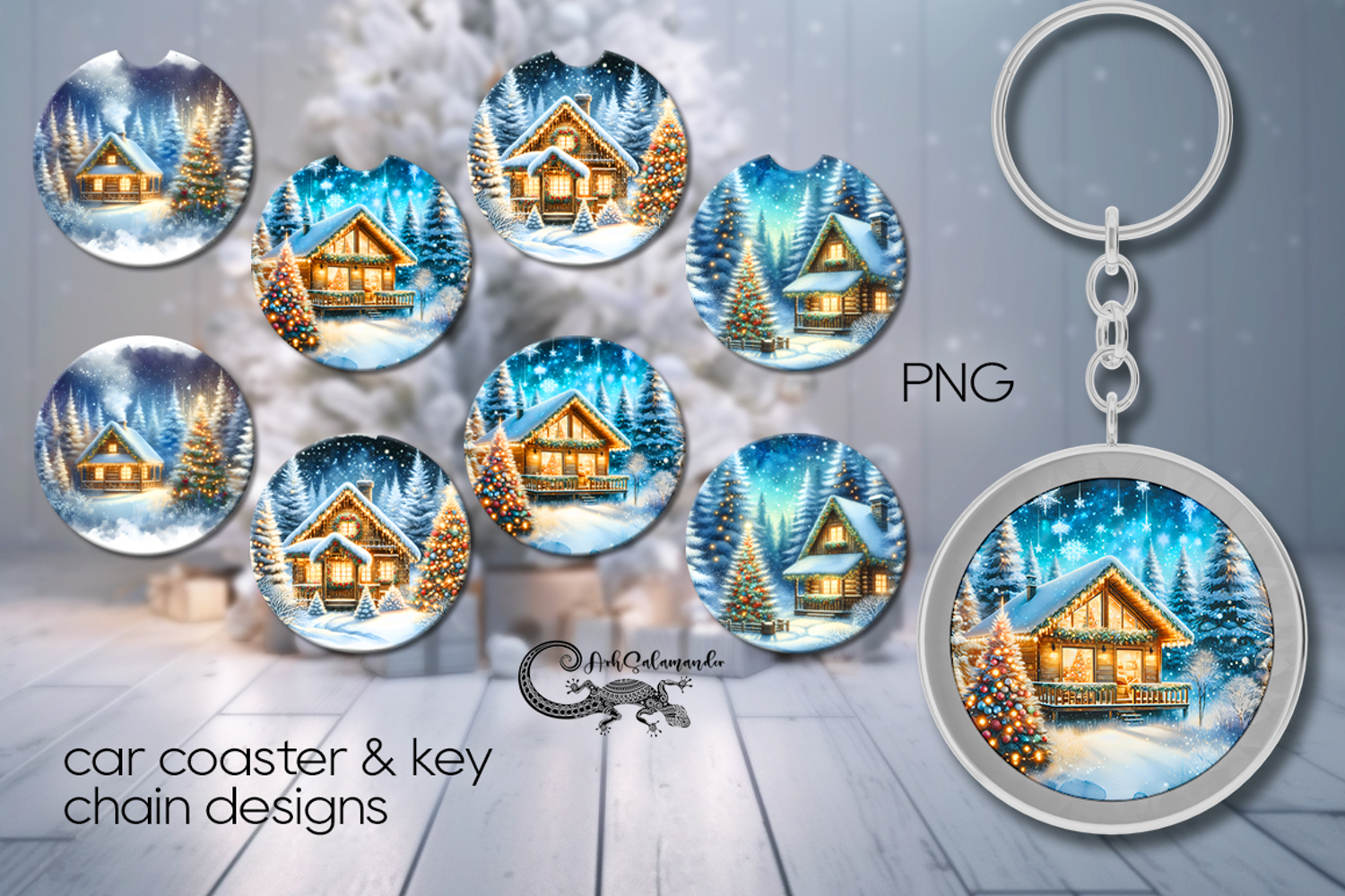 Christmas moods | 4 xmasCar coaster & 4 key chain designs example image 1