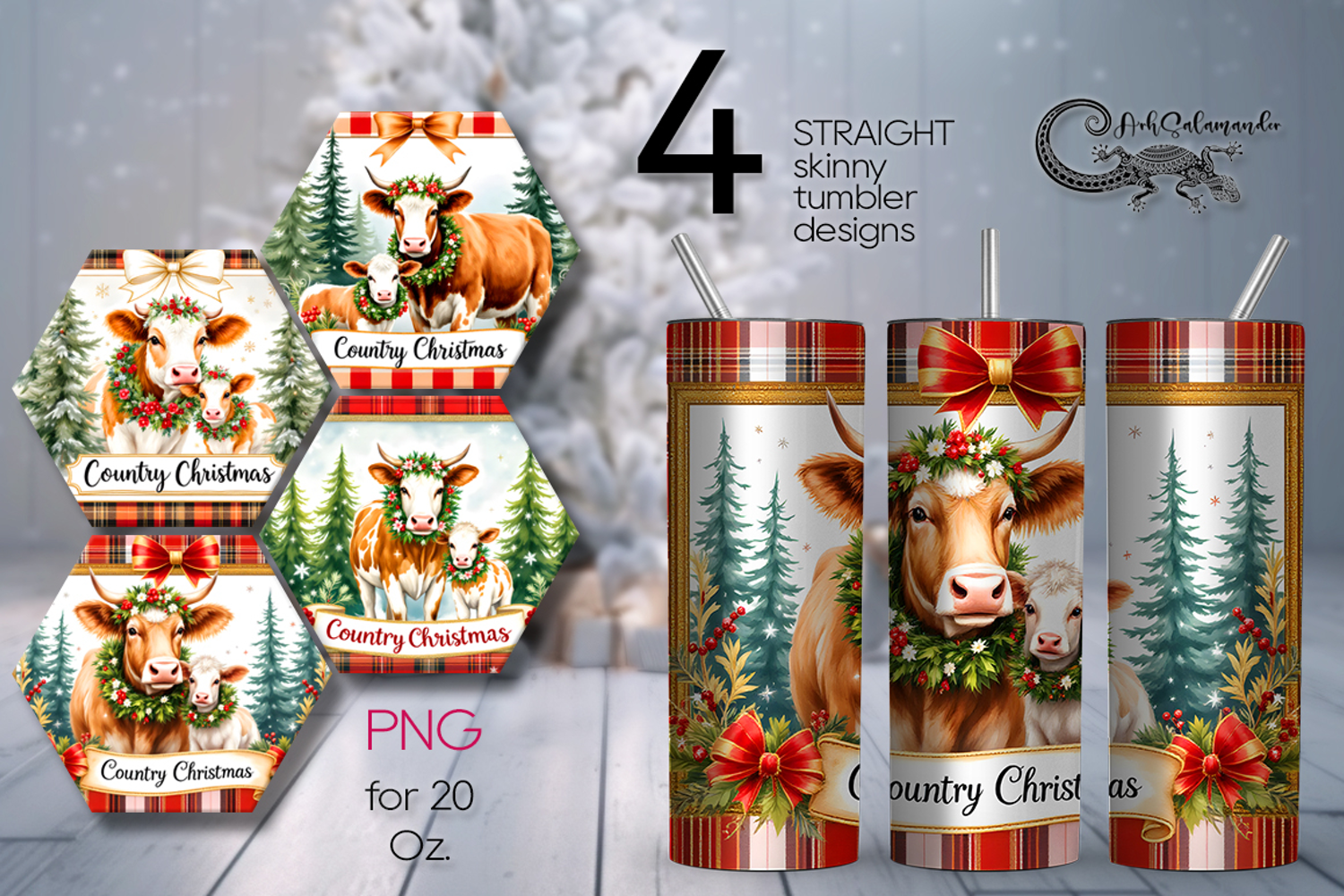 Country Christmas | 4 cow Sublimation Tumbler designs