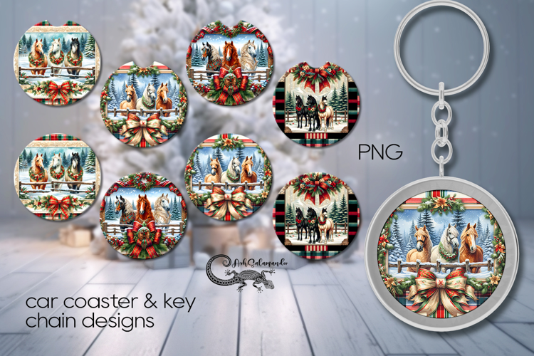 Country Christmas | xmas horse 4 Car coaster & 4 key chain example image 1