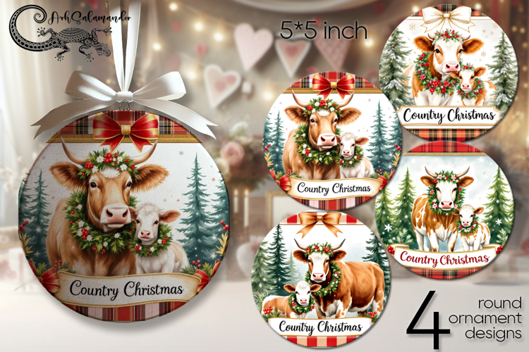 Country Christmas | cow round ornaments sublimation