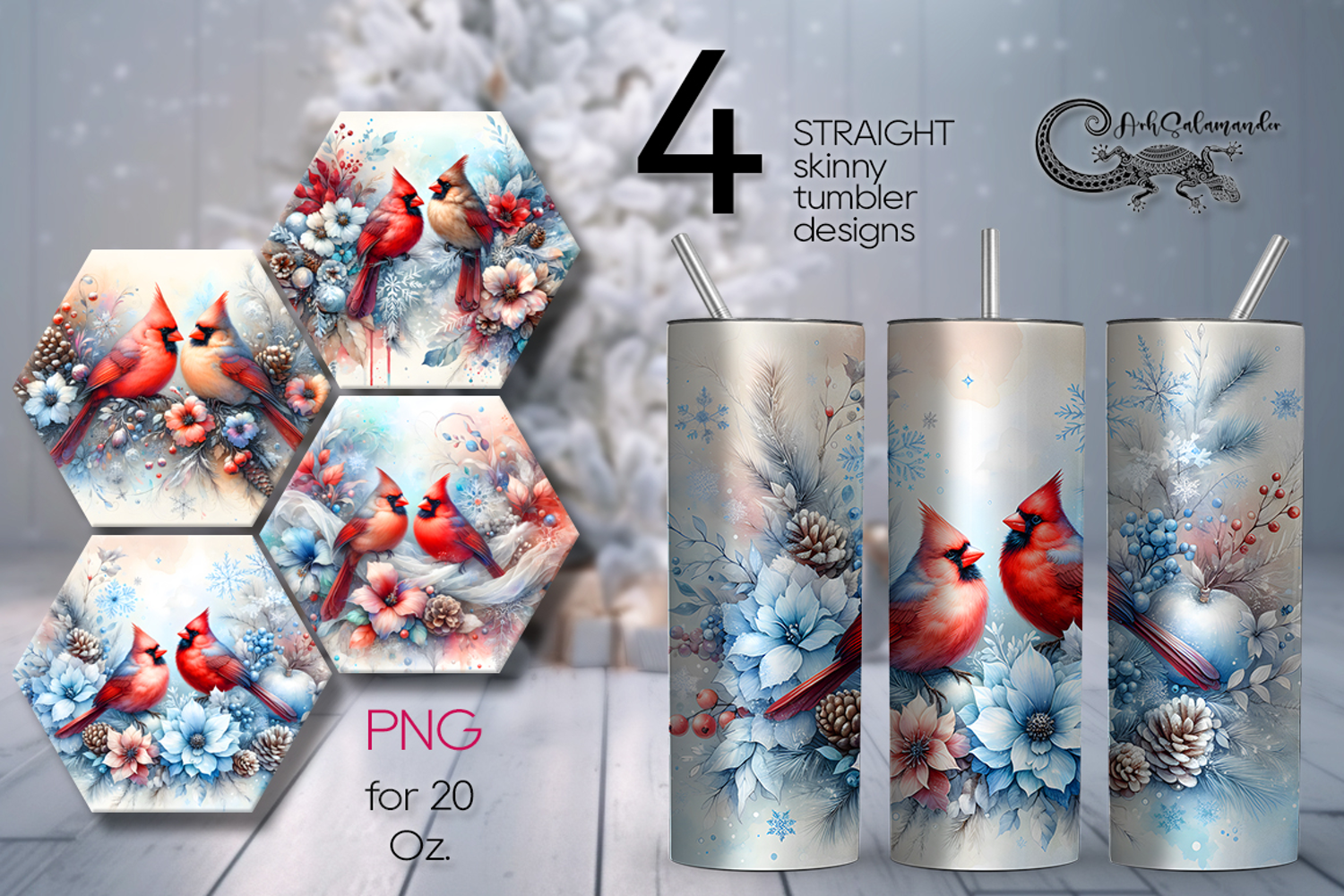 Christmas birds | 4 Cardinal Sublimation Tumbler designs