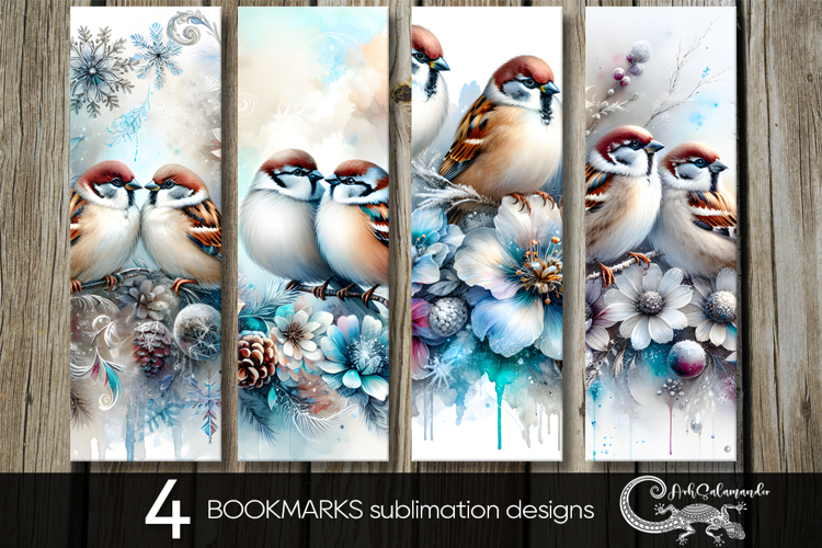 Christmas birds | 4 Xmas bookmarks sublimation designs