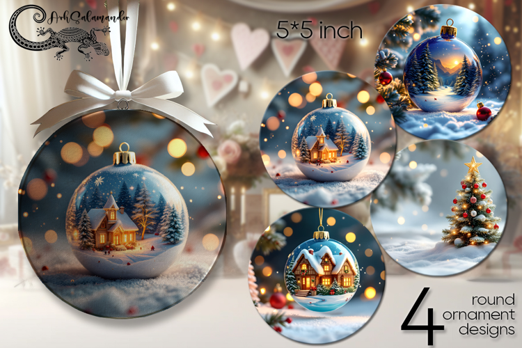 New year moods | 4 Xmas round ornaments sublimation PL2 example image 1