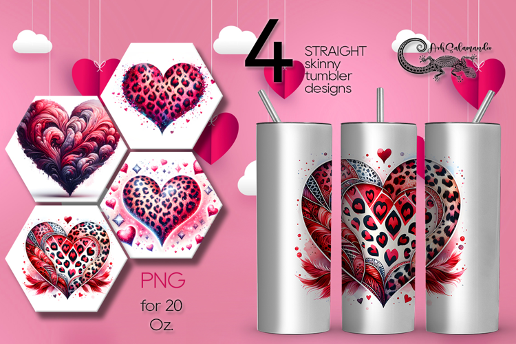 Love Hearts | 4 valentine Skinny tumbler sublimation designs example image 1