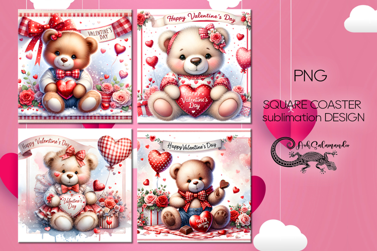 Valentine Teddy bear | 4 love square coaster sublimation example image 1