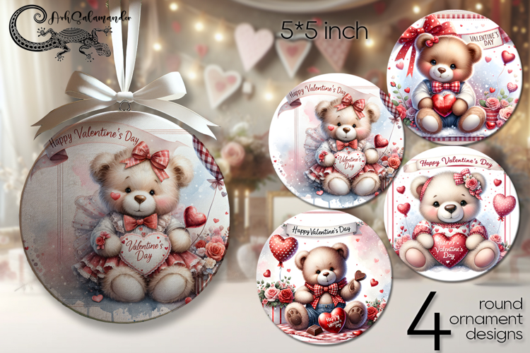 Valentine teddy bear | 4 love round ornaments sublimation