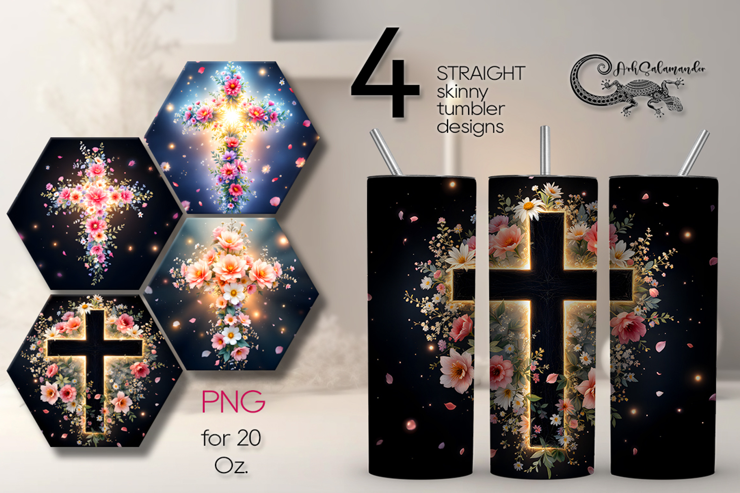Christian cross & flowers | 4 Faith Skinny tumbler designs P