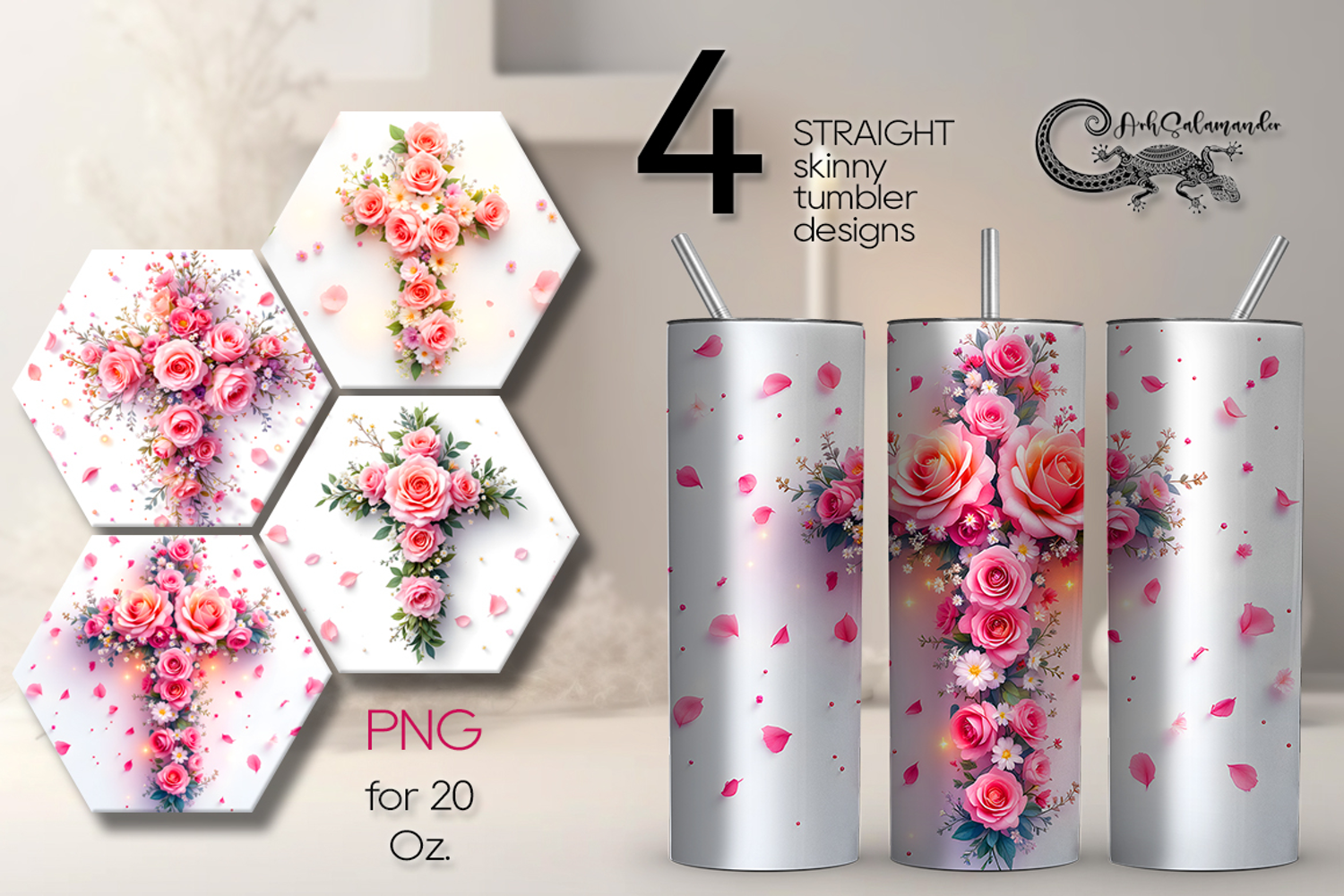 Christian cross & flowers 2 | 4 Faith Skinny tumbler designs