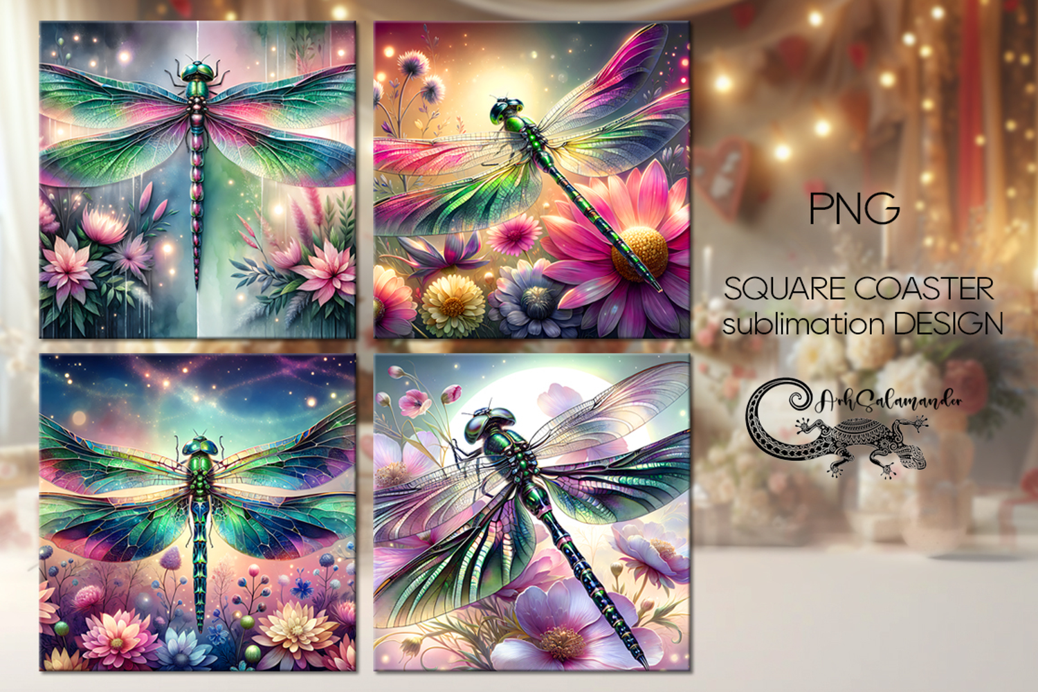 Spring dragonfly | 4 square coaster sublimation designs P2