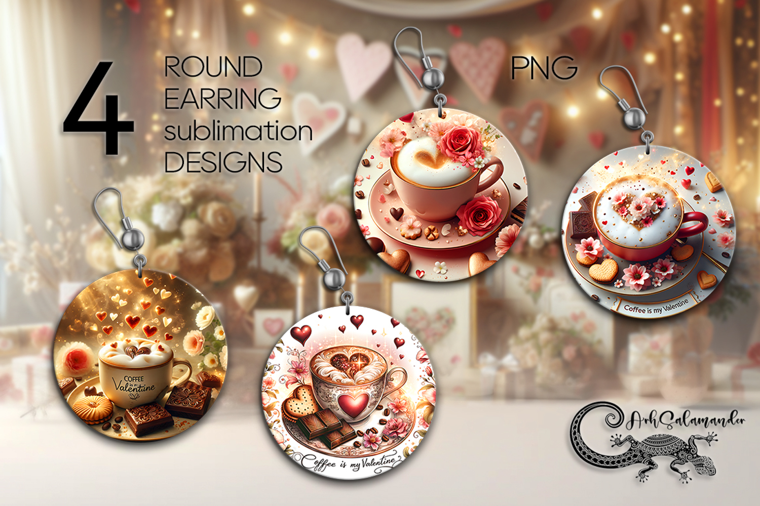 Coffee is my love | 4 Round earring sublimation designs P example image 1