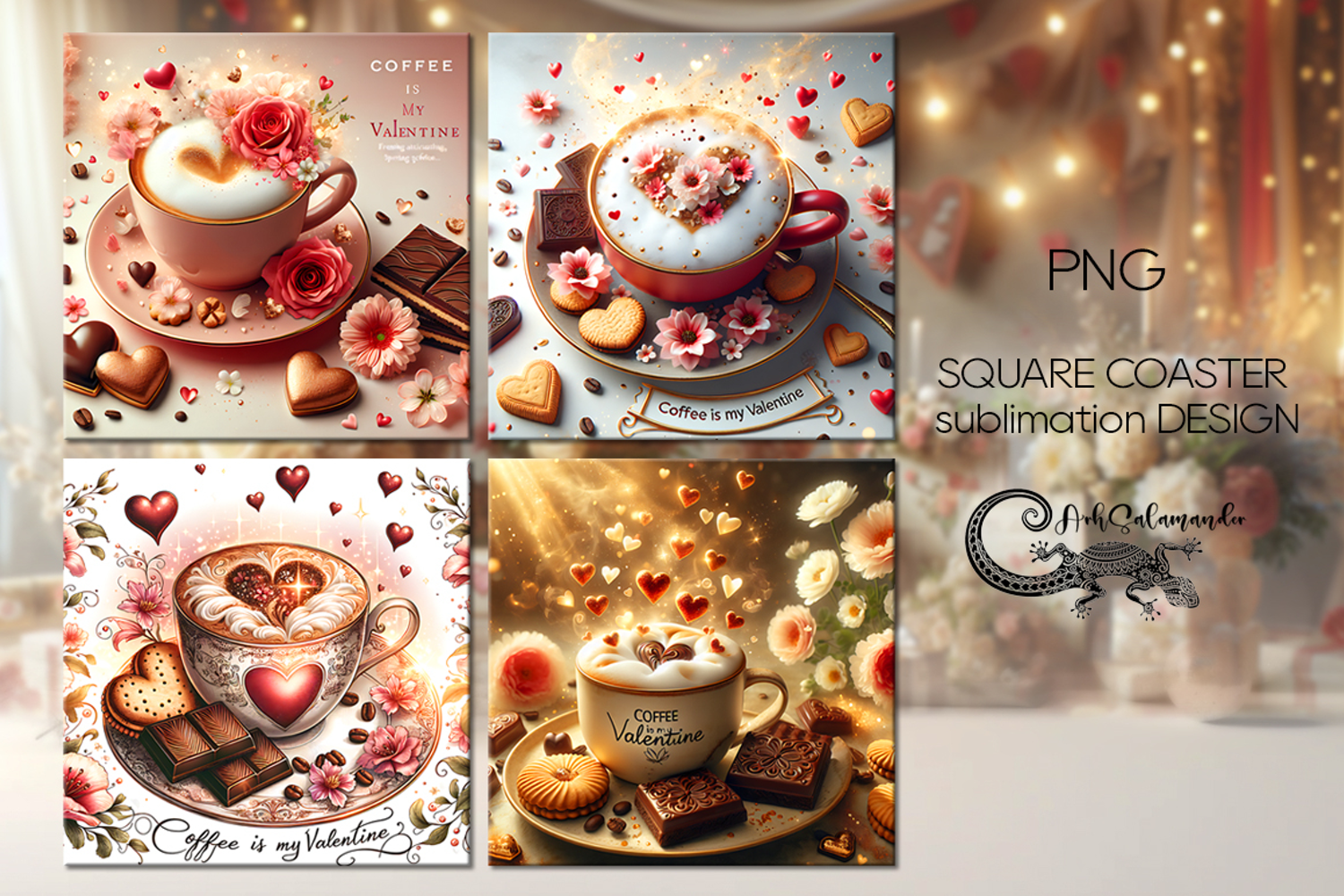 Coffee is my love | 4 square coaster sublimation designs P example image 1