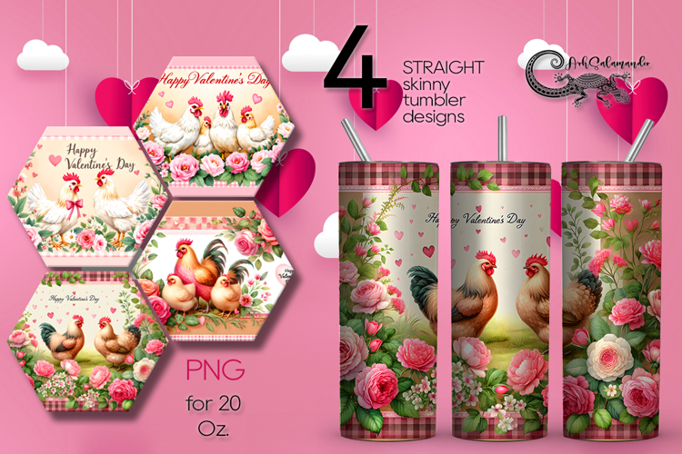Valentine farmhause | 4 skinny tumbler sublimation designs P example image 1