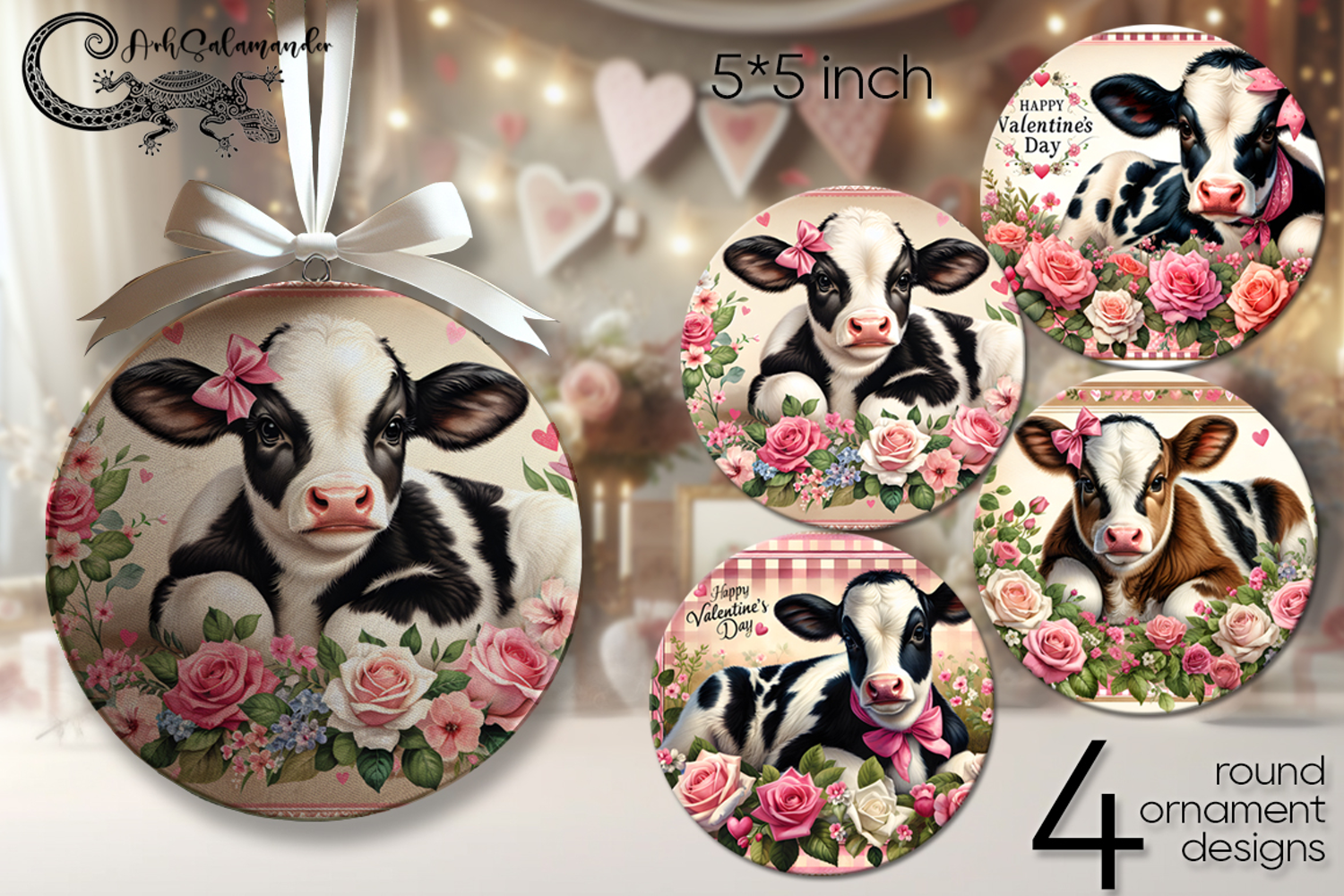 Valentine farmhouse | 4 round ornaments sublimation designs