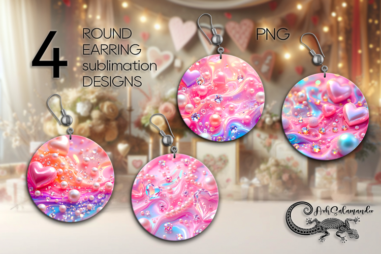 Love Pearls| 4 Valentine Sublimation round earring designs example image 1
