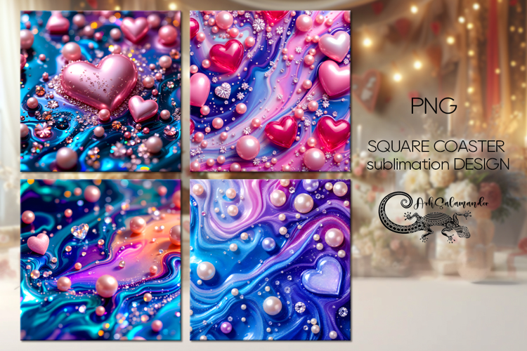 Love Pearls | 4 valentine square coaster sublimation designs example image 1
