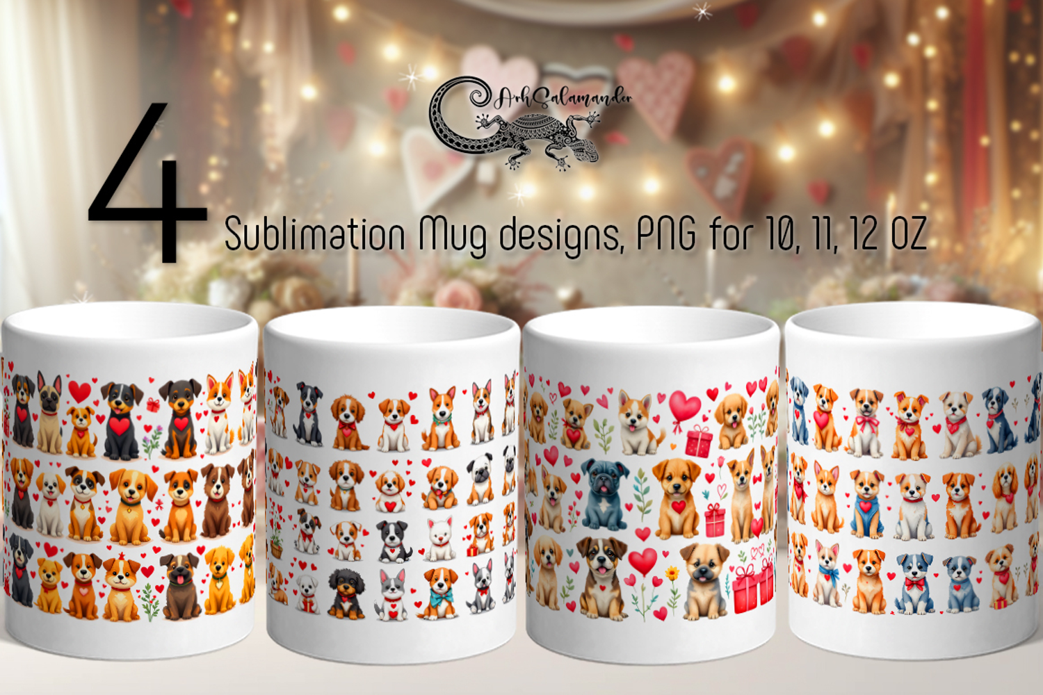 Cute valentine Dog | 4 love mug sublimation designs PLUS