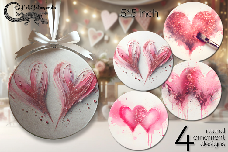 Valentine hearts | 4 round ornaments sublimation designs P2 example image 1