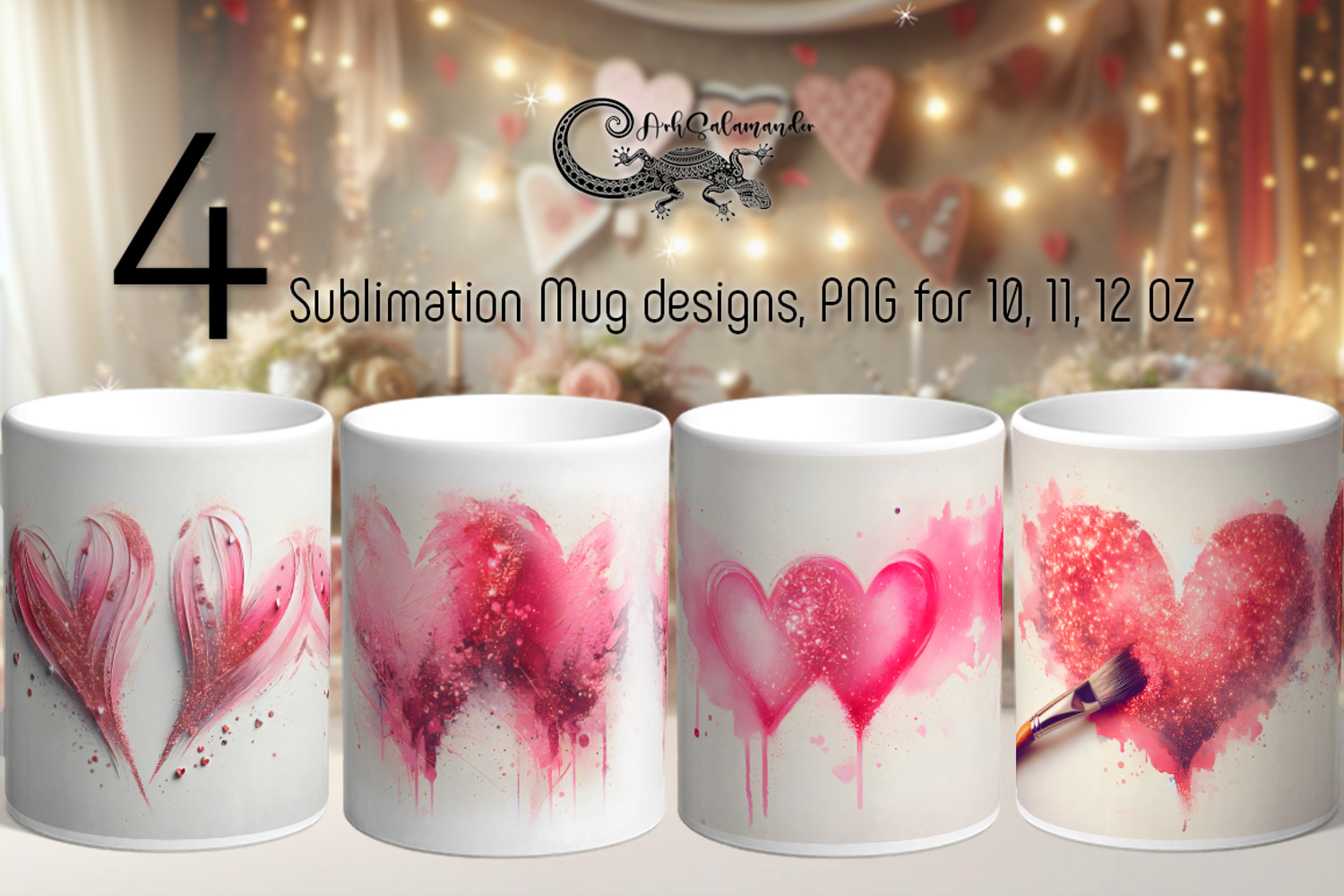 Love Hearts | 4 Valentine Sublimation Mug designs P2