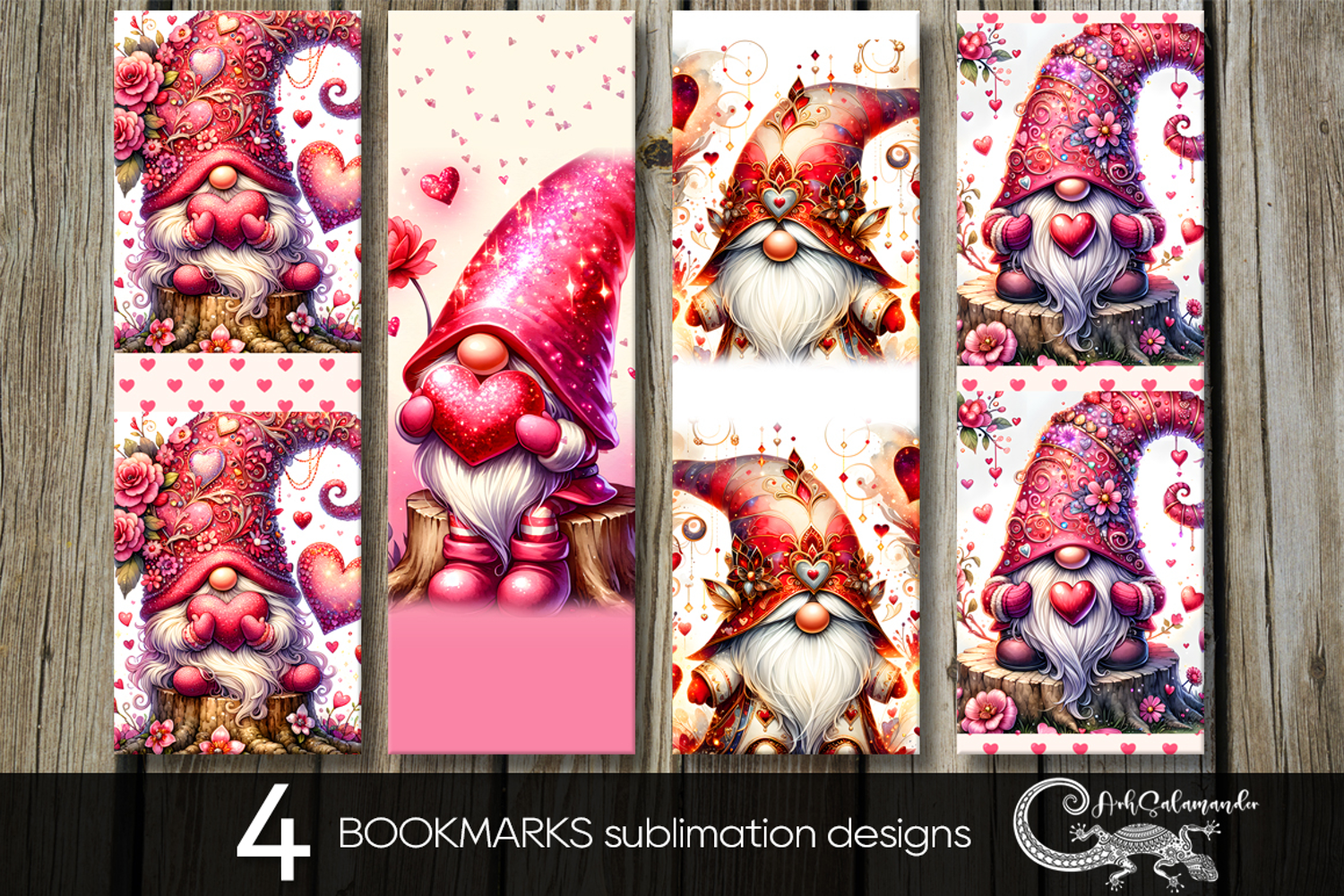 Valentine gnome | 4 cute bookmarks sublimation designs P2