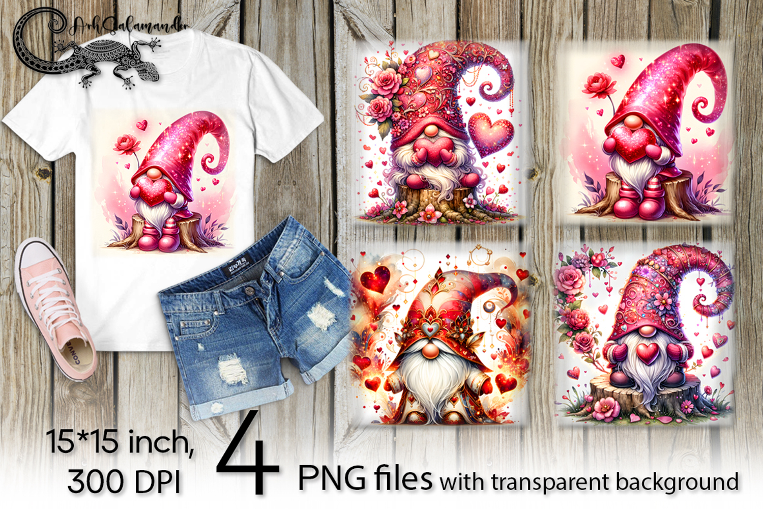 Valentine gnome | 4 love PNG Sublimation designs PL2