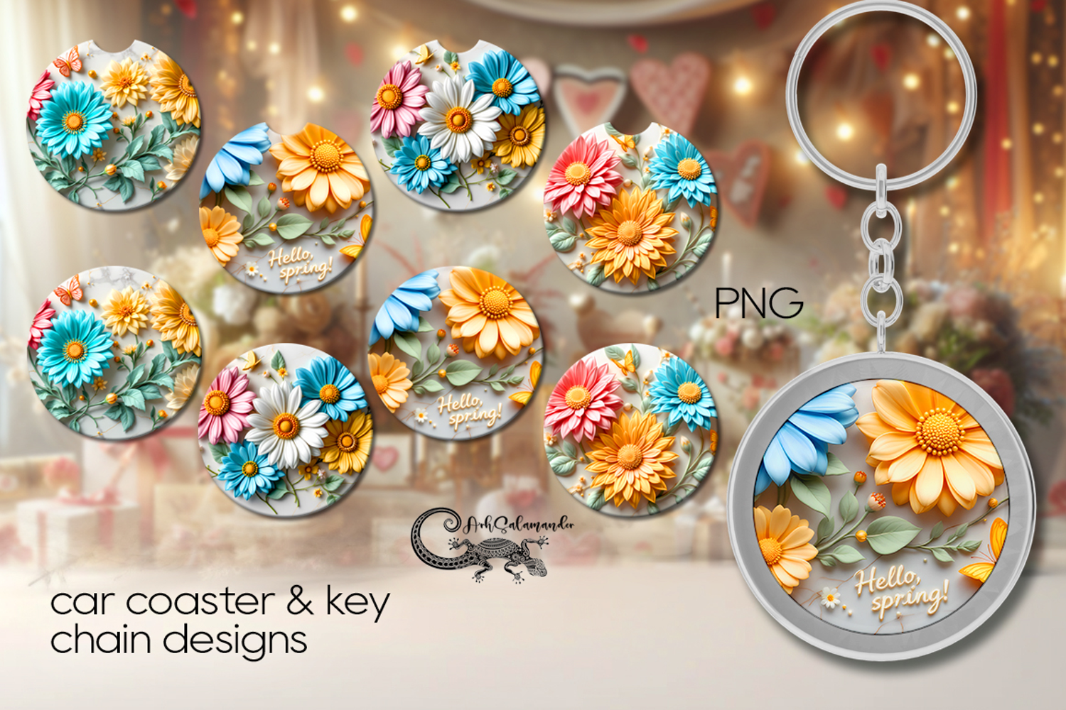 Similar Design Products to 3D Flowers | 4 car coaster & 4 key chain sublimation designs