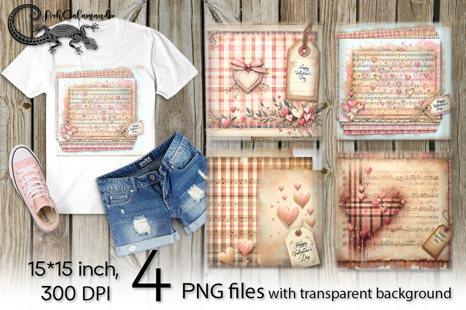 Valentine music | 4 vintage PNG Sublimation designs P
