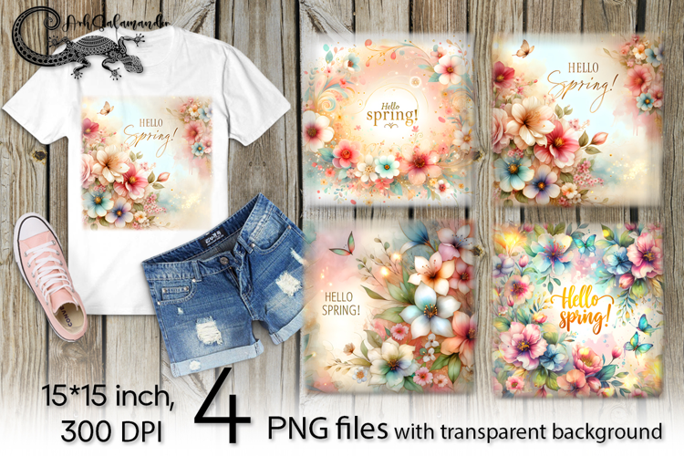 Hello Spring | 4 flowers PNG Sublimation designs P